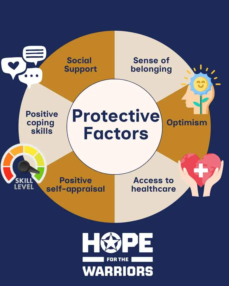 Protective factors not only reduce a person’s likelihood of being diagnosed with PTSD but also reduce the risk for a person to die by suicide.