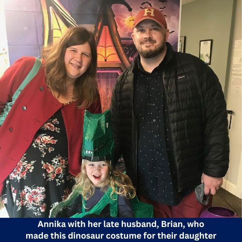 Annika has created a space in her home to honor Brian, a place where his memory lives, through a poem she wrote and a digital picture frame displaying his photos. This personal tribute reflects their deep love and connection, a bond that inspires her as she navigates life without him.